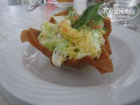 Завтракали в основном ресторане. Всегда большой выбор, голодными не останетесь. Обедать ходили в немецкий(большой минус, на мой взгляд, одноразовые пластиковые тарелки и, не знаю как назвать, кастрюли что ли на открытом воздухе под солнцем, крышки с которых снимаешь сам и за них невозможно взяться из-за того, что они раскалены) или рыбный, там по меню(выбор не большой, но все очень вкусно).