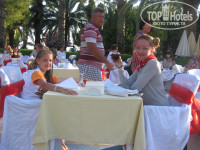 Ну и самое главное-это работа анимационной команды Matrix!!!!!!!!!!Дочка плакала всю дорогу и теперь каждый вечер у нас под музыку заученные танцы!:)) Рустамчик -кошмарчик! Спасибо за водную гимнастику и ты лучший аниматор!!!!!!! Богдана-Макарошка, Вика, Гульназ, Маришка-девочки вы великолепные мамочки! С вами тепло и уютно деткам!!!!!!!! Целуем вас и обнимаем! Светочка, Алена, Маргарита-красотки и волшебницы-феи, которые каждый вечер доставляю радость!!!! В хорошем смысле этого слова:)))))Отман, Челентано и Женечка-Вы самые самые мачо-парни!!!!!!!А Женя-так вообще мистер Украина!!!!!!! Возглавляет эту всю супер команду Эдди (пантера ты наша)! Большое тебе спасибо за внимание и мы будем скучать конечно же:))