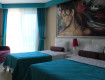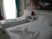 Номера-красивые,в каждом номере чайный набор,сейф (за доп.плату),но в нем необходимости не возникло-оставляли деньги и ценные вещи,все в порядке осталось.Под конец сезона перестали выдавать шампуни и кондиционеры.(видела на фото предыдущих отдыхающих),но жидкое мыло,ватные...