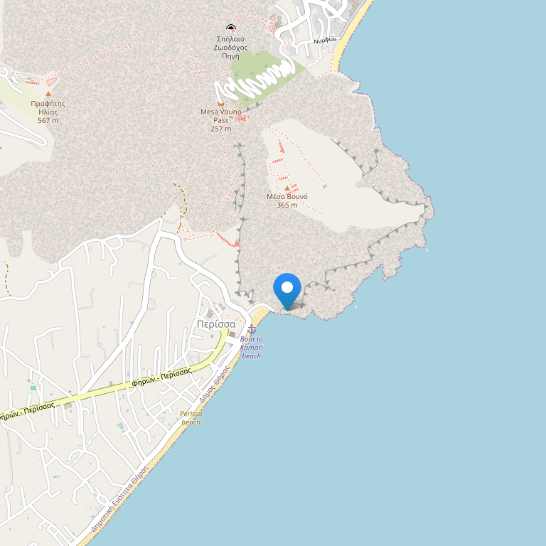 Отель Ancient Thera удобно расположен в Перисса, в 200 м от замечательного песчаного пляжа, в тихом и уютном месте, неподалеку от набережной с ресторанами, тавернами, развлекательными клубами, в 8 км от порта Перисса, в 14 км от аэропорта.