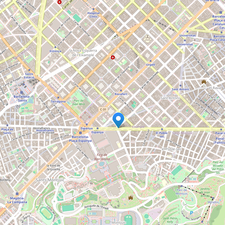 Отель расположен на одном из главных проспектов города, Гран Вия (Gran Vía). Район полный жизни, с многочисленными магазинами разного типа и типичными колоритными ресторанами и барами. Кроме того, главные достопримечательности города Барселоны, такие как Плаза Каталунья (Plaza Cataluña), Пасео де Грасия (Paseo de Gracia), Ла Рамбла (Las Ramblas), готический район (el Gótico) или Монтжуик (Montjuïc), находятся в шаговой доступности, а станция метро за углом.