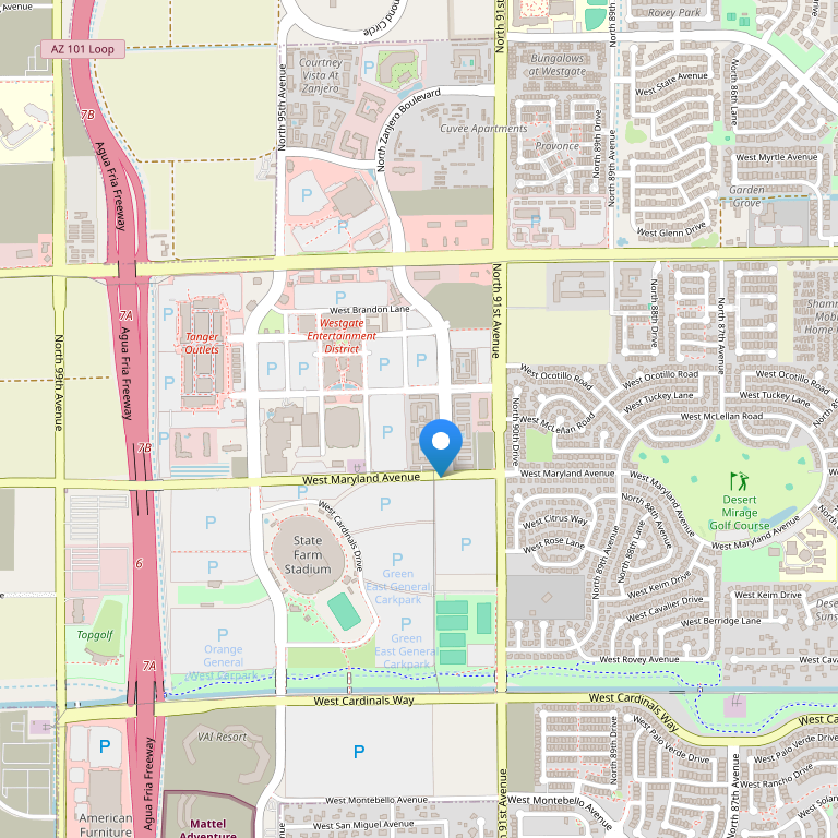 Отель расположен в 25 минутах езды от центра города Финикс, вблизи популярных достопримечательностей. Среди них: развлекательный район Westgate City Center и футбольный стадион University of Phoenix Stadium. Отель окружен различными торговыми центрами, ресторанами и магазинами.