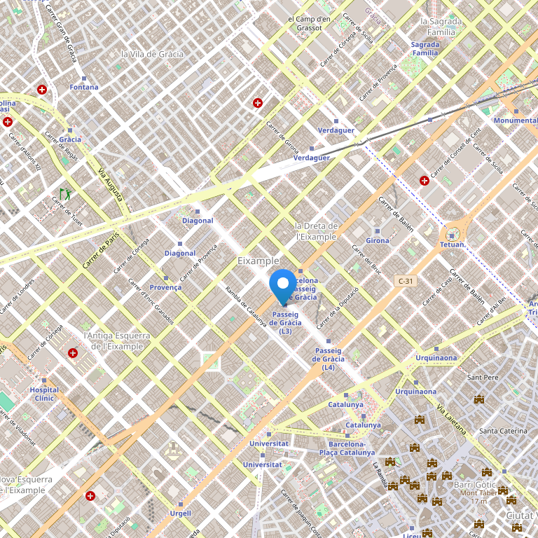 Апартаменты расположены в районе Эшампле Барселоны, в 500 метрах от престижного бульвара Пасео де Грасиа. Архитектурные памятники Гауди, такие как Дом Мила и Дом Бальо, находятся в 10 минутах ходьбы от апартаментов. До станций метро Girona и Verdaguer, откуда вы легко доедете до любого уголка города, - всего 5 минут ходьбы.