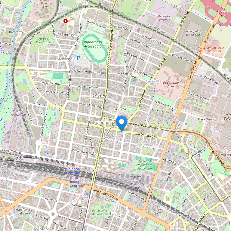 Отель расположен в центре Болоньи, в двух минутах ходьбы от выхода из нового павильона скоростных поездов центрального железнодорожного вокзала. До отеля можно легко добраться из аэропорта Гульельмо Маркони на шатле Aerobus за 20 минут. Исторический центр Болоньи и все основные достопримечательности находятся в непосредственной близости от отеля, пешком можно также дойти до главных торговых районов города.
