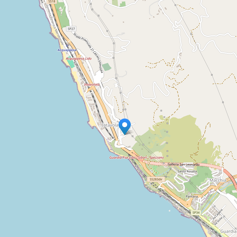 Отель окружен ухоженным садом и небольшой сосновой рощей и располагается на побережье Калабрии, в 200 метрах от собственного пляжа и всего в 2 км от знаменитого СПА-курорта Terme Luigiane, работающего совместно с итальянской системой здравоохранения. Город Аккуаппеза находится в 2,5 км от отеля, аэропорт Lamezia Terme - в 68 км, железнодорожный вокзал Paola – в 13 км, железнодорожный вокзал Guardia Piemontese – в 100 м. В 25 км расположен национальный парка Поллино.