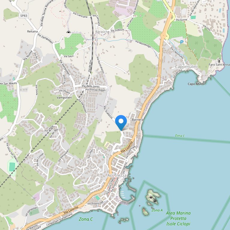 Отель расположен в местечке Acitrezza, на скалистом морском побережье у подножия горы Этна, напротив мифических островов Faraglioni и Lachea, недалеко от Катании. Месторасположение отеля идеально подходит для изучения других частей Сицилии. Неподалеку проходит автомагистраль и остановка автобуса, откуда можно легко добраться до центра Катании или съездить на другой пляж.