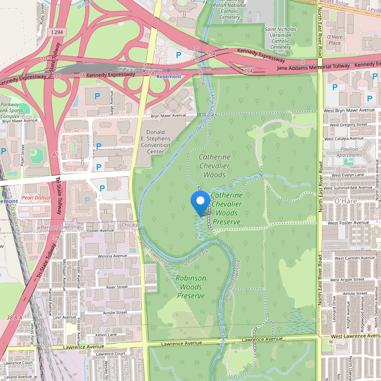 Отель расположен недалеко от трасс I-294 и I-90 и всего в 2 милях от международного аэропорта Chicago O’Hare International Airport (ORD). Отель напрямую соединен с конференц-центром Donald E. Stephens Convention Center через надземный переход. Расстояние до аэропорта Chicago Midway Airport – 28 миль.