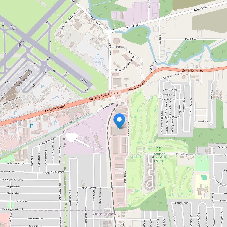 Отель расположен в городе Буффало, который известен такими достопримечательностями как Buffalo Bills и Ниагарские водопады, в 8 милях от центра города и всего в 160 метрах от аэропорта Buffalo - Niagara, а также недалеко от First Niagara Center, стадиона Ralph Wilson Stadium, зоопарка Буффало и ледового катка в Holiday Twin Rinks. Пройтись по магазинам можно в расположенном в центре города торговом центре Walden Galleria Mall. До Ниагарских водопадов – всего 22 мили.