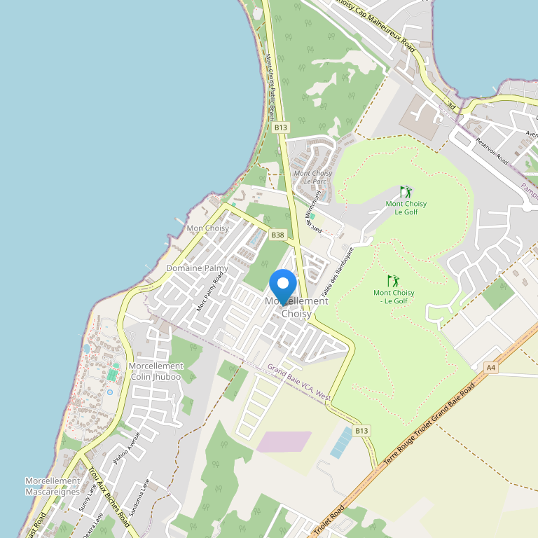Отель расположен в Мон-Шуази, вдоль северного побережья Маврикия, рядом с одним из самых популярных песчаных пляжей на острове, в окружении кокосовых пальм и тропических растений, в 5 минутах езды от оживленного Гранд-Бей, примерно в часе езды от аэропорта и в 30 минутах езды от Порт-Луи.