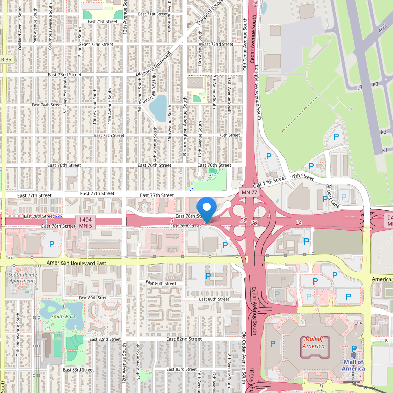 Отель расположен в городе Bloomington, в 1,6 км от всемирно известного торгового центра Mall of America. Аэропорт Миннеаполиса St. Paul находится в 7 км от отеля. Здесь вы сможете посетить красивый зоопарк Minnesota, парк аттракционов Valley Fair, бейсбольное поле Target Field, Walker Art Center и исторический форт Snelling.
