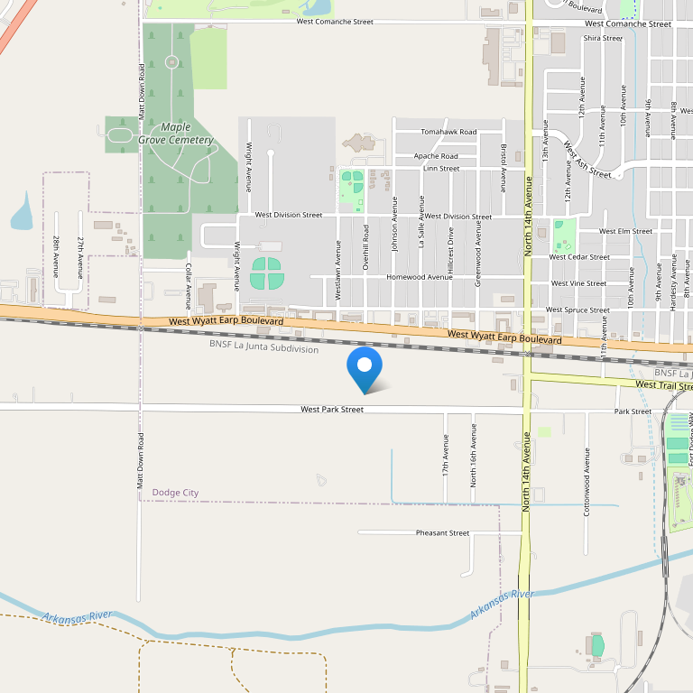 Отель располагается в центральной части США, в самом центре города Dodge City, штат Kansas. Расстояние до Dodge City Regional Airport (DDC) составляет 6,2 км. Неподалеку – музей Boot Hill, музей восковых фигур Gunfighters, Mueller-Schmidt Home of Stone и зоопарк Lee Richardson.