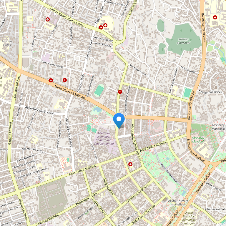 Отель расположен в самом центре торговой и деловой части города Самарканд, в 2 км от района Старого города и площади Регистан. До международного аэропорта Самарканда - 10 км.