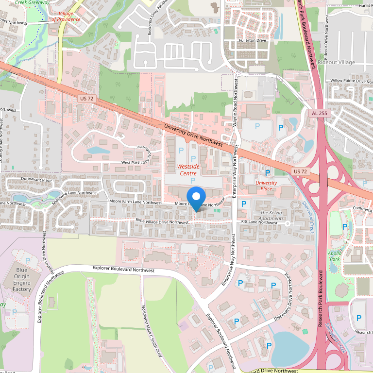 Отель находится недалеко от знаменитого ракетно-космического центра, в городе Хантсвилл. Рядом с отелем расположено множество ресторанов и магазинов на любой вкус. В 7 км от отеля находится ботанический сад и ракетно-космический центр НАСА. В 5 минутах ходьбы можно посетить кинотеатр Madison Carmike. Международный аэропорт Хантсвилла находится в 16 км.