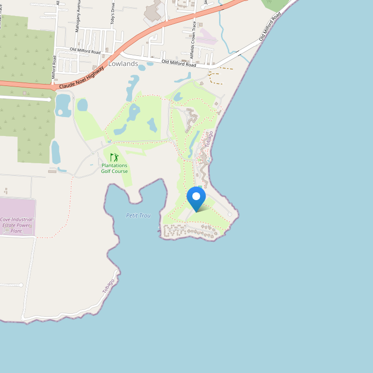 Отель расположен вдоль длинного песчаного пляжа посреди пышного тропического сада на территории в 750 акров, рядом с полем для гольфа. Комплекс находится в заливе Литл-Рокли, в 10 минутах езды от города Скарборо, в 10 минутах езды от пляжа Пиджеон-Пойнт и в 30 минутах езды от водопада Аргил. До футбольного стадиона Дуайт Йорк - 20 минут езды, до международного аэропорта имени Артура Наполеона Реймонда - 5 минут.
