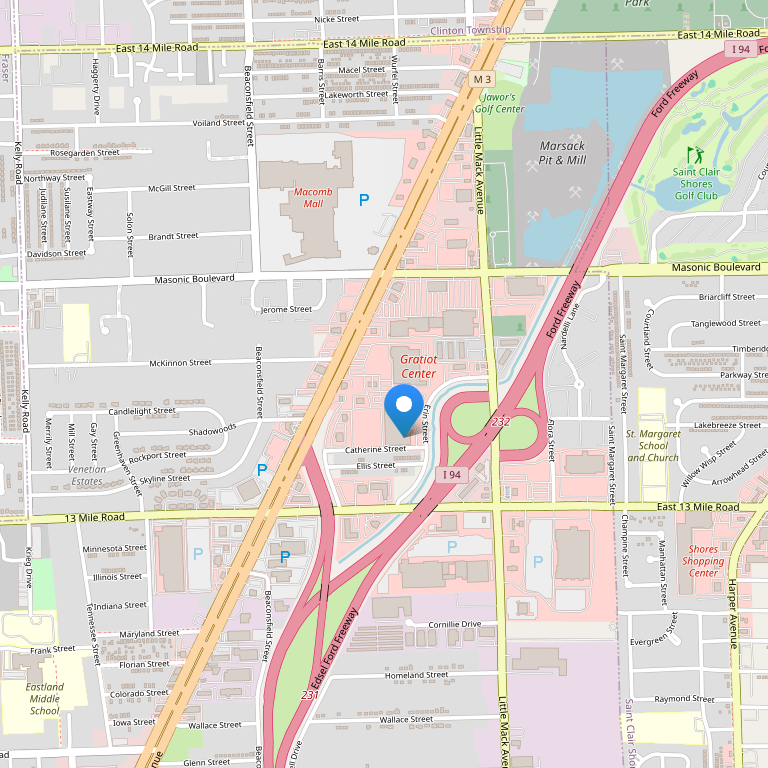 Отель находится рядом с автомагистралями I-696 и I-94 в оживленном районе Metro Detroit, недалеко от берега озера Lake St. Clair и таких компаний как Chrysler, General Motors, Selfridge ANG, больниц St. John's Hospital и Mount Clemens General Hospital и зоопарка Детройта. Неподалеку также располагается торговый центр Macomb Mall и казино Motorcity Casino, MGM Grand Detroit Casino и Greektown Casino. Расстояние до аэропорта Detroit Metro – 66 км.