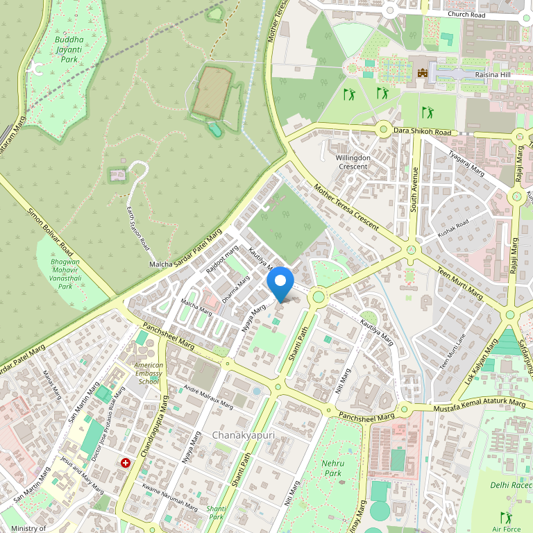 Отель находится в богатом элитном районе Чанакьяпури в Нью-Дели , в 3 км от Ворот Дели и в 4 км от делового района Коннот-Плейс. Расстояние до еждународного аэропорта Дели составляет 18 км.