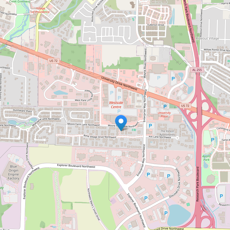 Отель расположен рядом с шоссе Highway 255, менее чем в 10 минутах езды от центра города, в 5 минутах езды от торгового центра Madison Square Mall и магазинов на открытом воздухе Bridge Street Town Centre, недалеко от Cummings Research Park, музея Huntsville Museum of Art и гольф-клуба Hampton Cove Golf Course.
