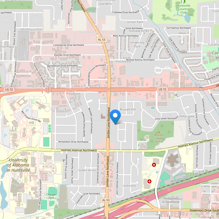 Отель находится в пригороде, рядом с автомагистралью I-565, в 3 милях от центра города и Von Braun Civic Center, а также недалеко от Redstone Arsenal, NASA's Marshall Space Flight Center и Cummings Research Park и таких местных достопримечательностей как ботанические сады Huntsville Botanical Gardens, Sci-Quest и исторический район Twickenham. До международного аэропорта Huntsville – 19,3 км, международного аэропорта Birmingham/Shuttlesworth – 160,9 км.