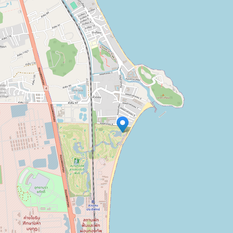 Отель расположен в историческом приморском городе Хуа Хин, на одном из самых красивых пляжей, Khao Takiab Beach, недалеко от основных достопримечательностей: храмы, местные рынки - Cicada и Tamarind, а также торговые комплексы: Blueport и Market Village.