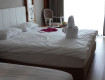 По приезду, после небольшой паузы с шампанским заселили нас достаточно быстро, но номер немного не устроил, так как выходил на дискотеку соседнего отеля, что могло бы помешать сну нашего двухлетнего ребенка. На нашу просьбу предоставить другой номер, сотрудники отреагировали очень оперативно и предложили отличный тихий номер.