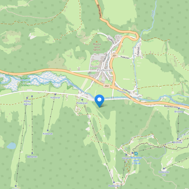 в центре местечка Краньска Гора, рядом с подъемниками и гостиницами "Ларикс" и "Присанк", полностью отремонтированы в 200 году.