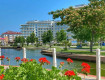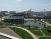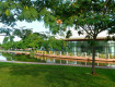 Много корпусов, бассейн возле...