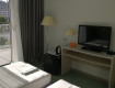 На ресепшене встретили так, как будто "не ждали, а мы припёрлись". Девушка не поднимая глаз пообещала, что вид из окон будет море, но не уточнила, что ещё и дорога и помойки.