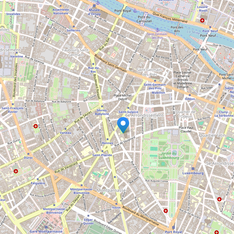 Отель расположен в левобережной части Парижа в квартале Сен-Жермен-де-Пре, и его окна выходят на знаменитые кафе Flore и Deux Magots. Лувр и музей Орсе находятся на расстоянии пешей прогулки.