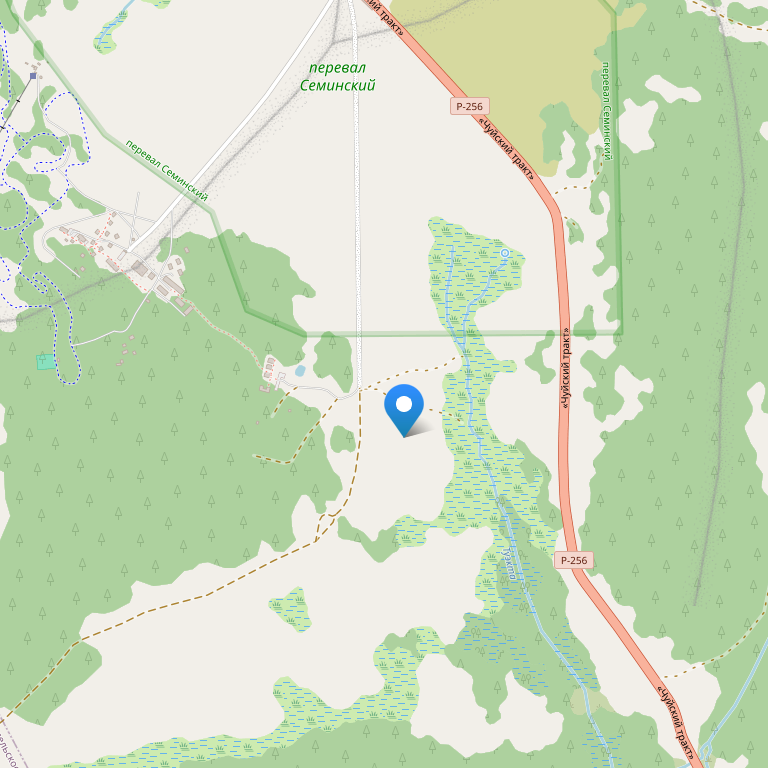 База отдыха находится в Семинском перевале - одном из красивейших мест Горного Алтая. Перевал находится на высоте 1700 м над уровнем моря - высоте лучших горных курортов мира, высоте, которая уже сама по себе дает прекрасный оздоровительный эффект. Большой плюс к этому: отсутствие испепеляющей летней жары, клещей и комаров.