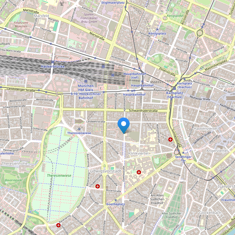 Отель расположен в историческом центре города, вблизи центрального железнодорожного вокзала Мюнхена и в 1.3 км от площади Мариенплац. Октоберфест Терезиенвизе располагается в 10-минутах ходьбы.