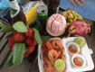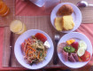 На завтраки выбор есть,много фруктов,очень вкусный кофе.Мы наедались.