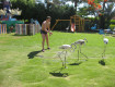 На пляже зарядка, дарц, в море аквааэробика, танцы (живота, латина)
