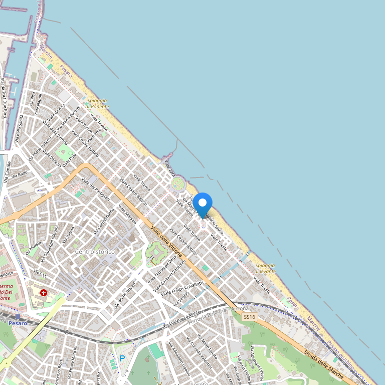Отель удобно расположен на берегу моря недалеко от центра Пезаро.