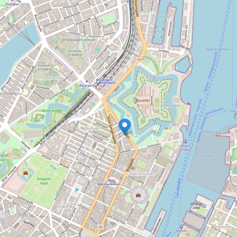 Отель расположен в здании, построенном в 1891 году, недалеко от центра города, рядом с Русалочкой, фонтаном Гефионы, Дворцом Амалиенборг и парком Амалиенхаве; в 500 метрах от станции метро Osterport (прямое сообщение с аэропортом).