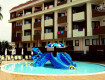 4 больших бассейна (1 из кот-х крытый), 3 детских с маленькими горками (1 под навесом от солнца). Вода в бассейнах - приятно прохладная. К вечеру прогревается.