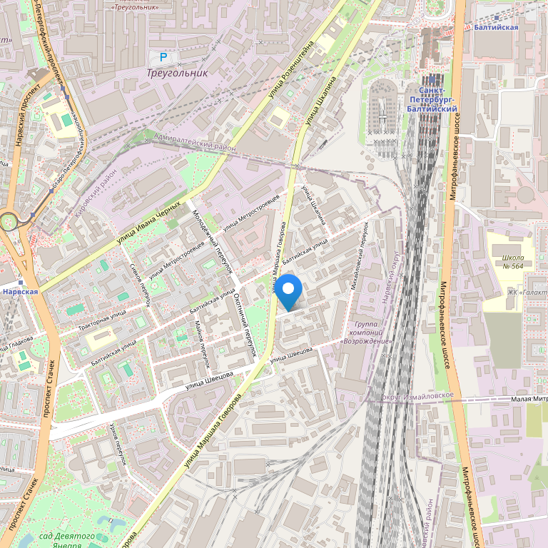 Отель расположен на Балтийской улице, между двумя крупными магистралями – проспектом Стачек и улицей Маршала Говорова, всего в пяти минутах ходьбы от площади Нарвских ворот и метро «Нарвская». Отель находится в отдельном трехэтажном здании, а перед входом в отель просторная и удобная площадка для парковки.