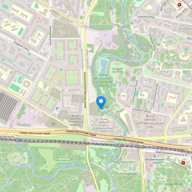 Отель расположен в 10 минутах езды на метро от центра города, в 5 минутах ходьбы от станции метро «Ботанический сад», недалеко от облагороженной набережной Яузы, старинной усадьбы «Свиблово» и Ботанического сада.