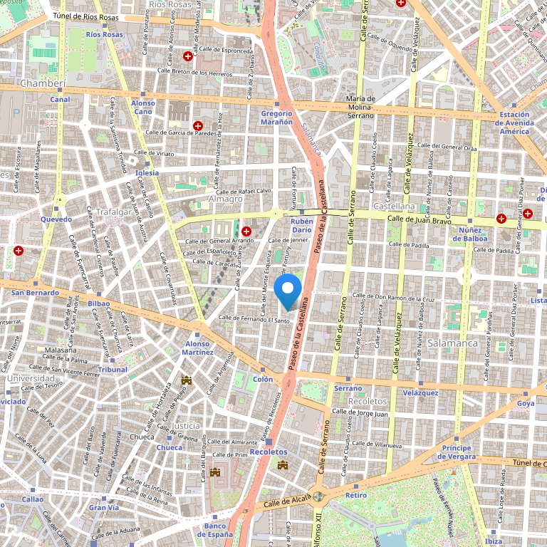 Фешенебельный отель расположен в самом сердце Мадрида, респектабельном и престижном районе Саламанка, соседствуя со старинными дворцами испанской аристократии, магазинами, бутиками дизайнеров с мировой славой, в непосредственной близости от знаменитых музеев. Рядом с отелем проходит улица Ortega и Gasset золотая миля моды, где Вы найдете магазины самых престижных мировых марок.