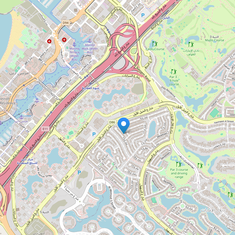 Отель расположен в оживленном районе, в 32 км от международного аэропорта Дубая и в 80 км от аэропорта Абу-Даби. Расстояние до парка Aquaventure и торгового центра Dubai Mall составляет 19 км, до небоскреба Бурдж-Халифа – 22 км, до гольф-клуба Emirates Golf Club – 4 км.