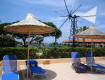 Территория отеля хорошая, зеленая, лежаков хватает на всех. На территории загорать можно не только под зонтиками, но и в тени деревьев, что очень радует. Номер был DeLuxe Sea View. Площадь номера совсем небольшая, на троих маловато. Вид из номера был красивый. DeLuxe от Superior...