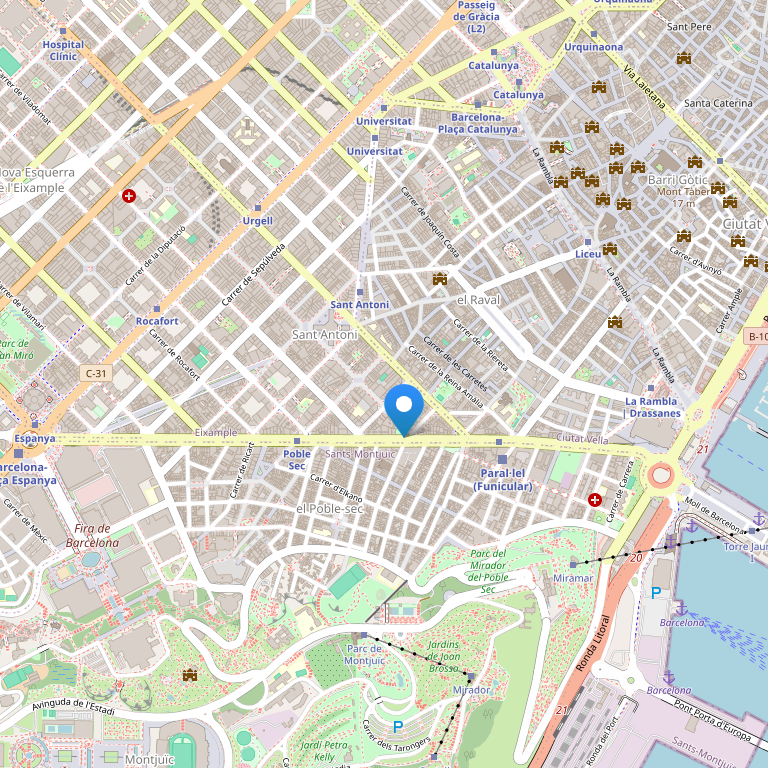 Будучи стратегически расположенным в пяти минутах ходьбы от Рамблы, отель Барселона предоставляет своим гостям доступ ко всем частям города. Рядом с главным входом расположены станции метро “Paral·lel” 2-ой и 3-ей веток, а автобусы доставят вас на пляжи Барселоны, в Парк Гуэль и в любую точку между ними. Прогулка от нашего отеля возле Рамблы приведёт Вас к одним из самых любимых туристами достопримечательностям.
