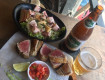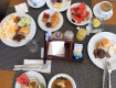 Еда: изумительная) много мяса, овощей, гарниров...