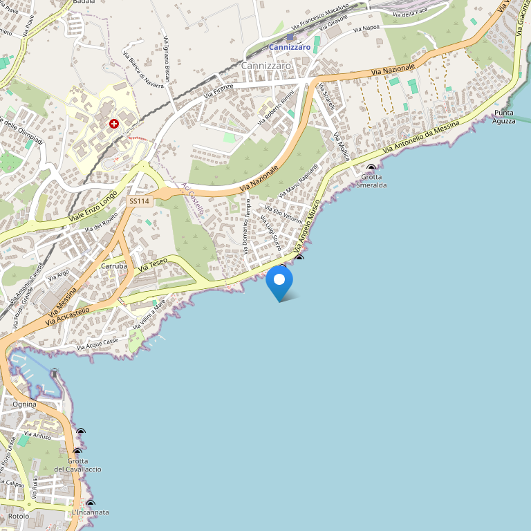 Отель расположен на скале, нависающей над морем, в местечке Каннидзаро в нескольких километрах от Катании с прекрасным видом на море и вулкан Этна. Отель оформлен в современном стиле.