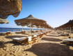 Большой пляж с огромным количеством зонтиков. Зонтики с лежаками не нужно было занимать утром (видимо пока еще не сезон). Даже когда была сама жаркая погода было занято максимум 1/3 зонтиков с лежаками.