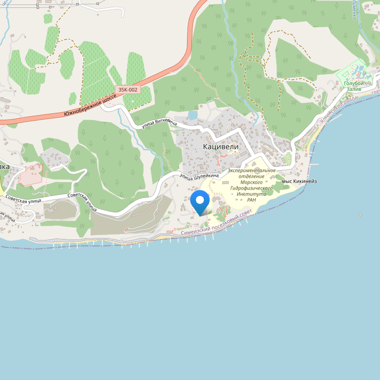 Пансионат ДТУ Кацивелли (Дом Творчества Ученых) расположен в поселке Кацивелли, на территории более 3 гектаров, в замечательном тихом Голубом заливе, всего в 50 м от берега собственного пляжа. Аквапарк «Голубой залив» находится в 800 м от отеля.