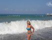 Пляж:плиты конечно есть, по центру захода в море, но если заходить левее, то там никаких булыжников.Первые дни море было более спокойное, но...