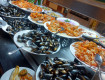 Из еды есть все, что вашему желудку хочется. Рыба, мясо, морепродукты, овощи, фрукты, и тдтп. Все вкусно, вряд ли надоест (если вы не привередливые).