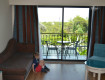 У нас был стандартный номер с терассой на 1 этаже. На "балконе" были 2 лежака, гамак, столик и 2 стула. Очень удобно было отдыхать там в обеденное время пока дочка спала. Вид был на "землю"))) - солнца в обед на терассе не было совсем, что оказалось большим плюсом. Номер небольшой, но мы же не в номере приехали сидеть?! Убирались в...