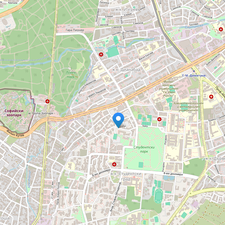 Отель расположен у подножия горы Витоши и находится между двумя основными бизнес комплексами – Бизнес Парк София и Мировым торговским ценром Интерпред, в 6 км от центра города, в 9 км от аэропорта Софии, в 10 км от центрального железнодорожного вокзала.