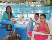 Все открытые кафе рядом с бассейнами (ребенок купается, нам видно). Полный обед на втором этаже, что обязывает людей приходить одетыми ( а не в купальниках), там же вечером проходит и ужин. Со второго...